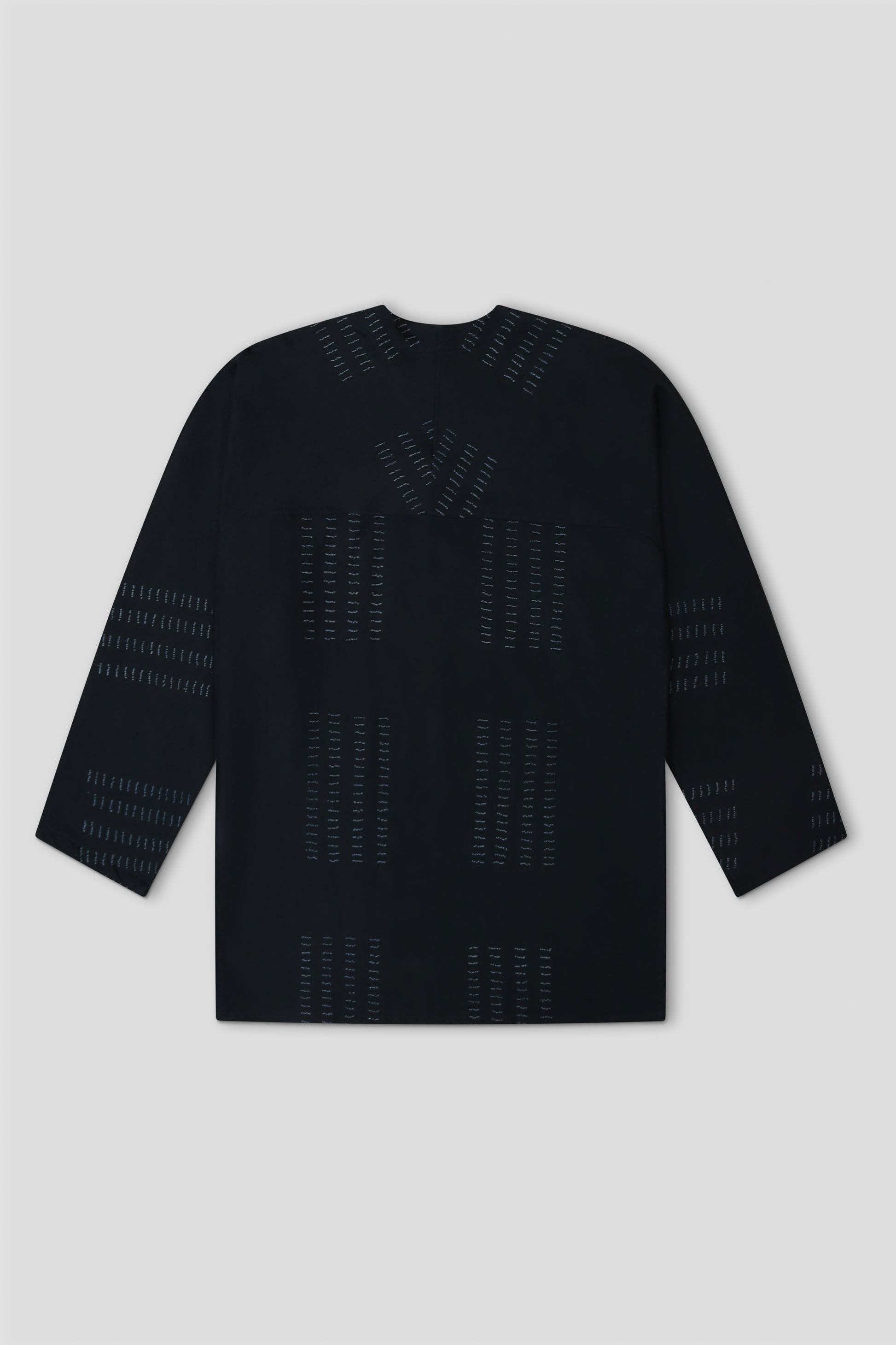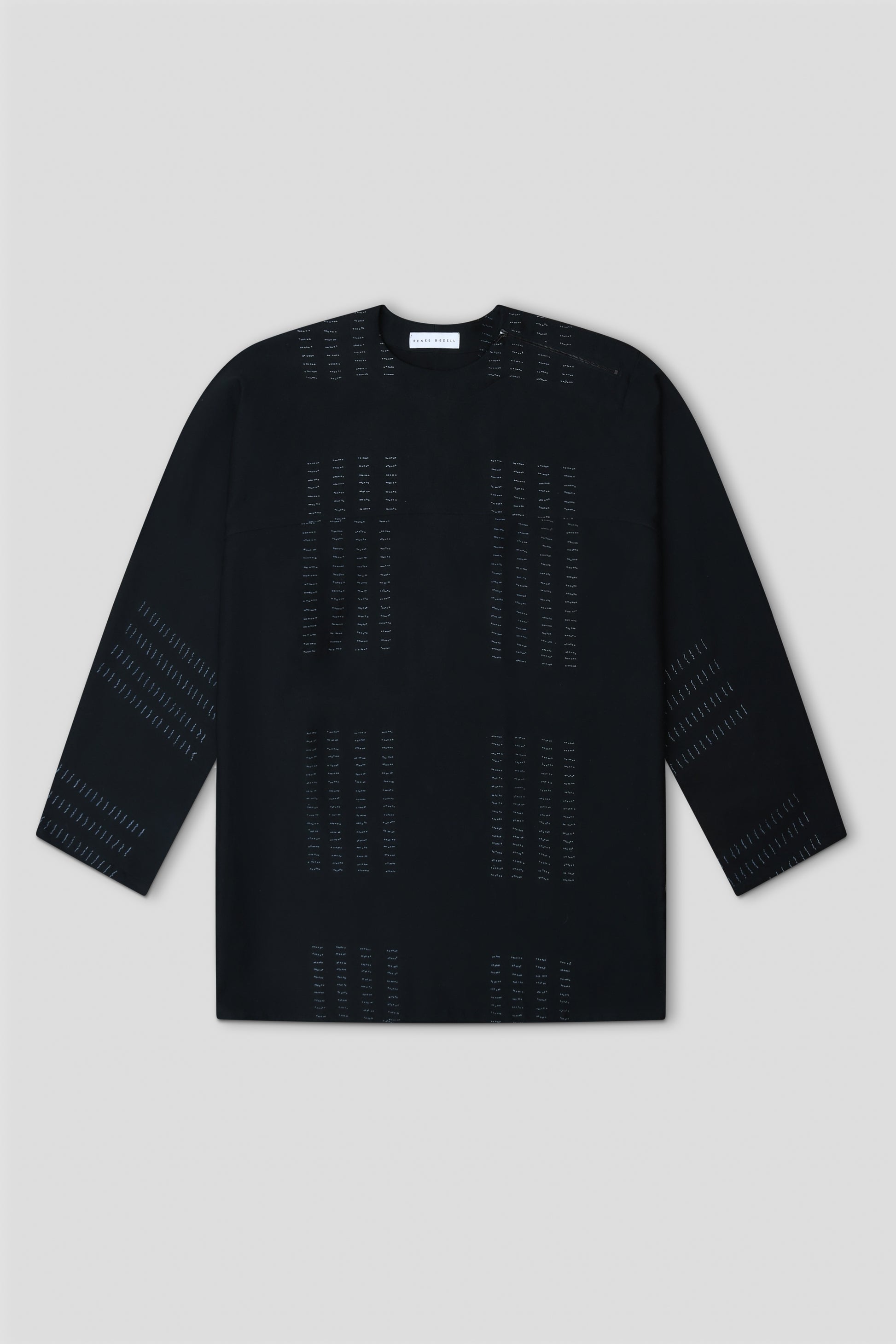 Black cotton shirt with spot print. Featuring a black metal Riri zip opening in the shoulder. Sleeves are cut in one piece for relaxed fit.