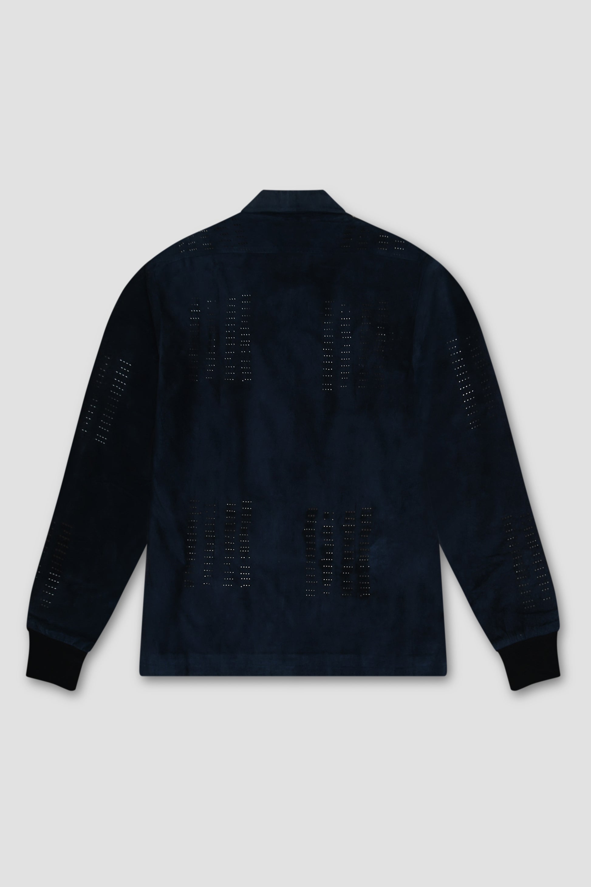 Laser-cut Navy Blue Suede Jacket